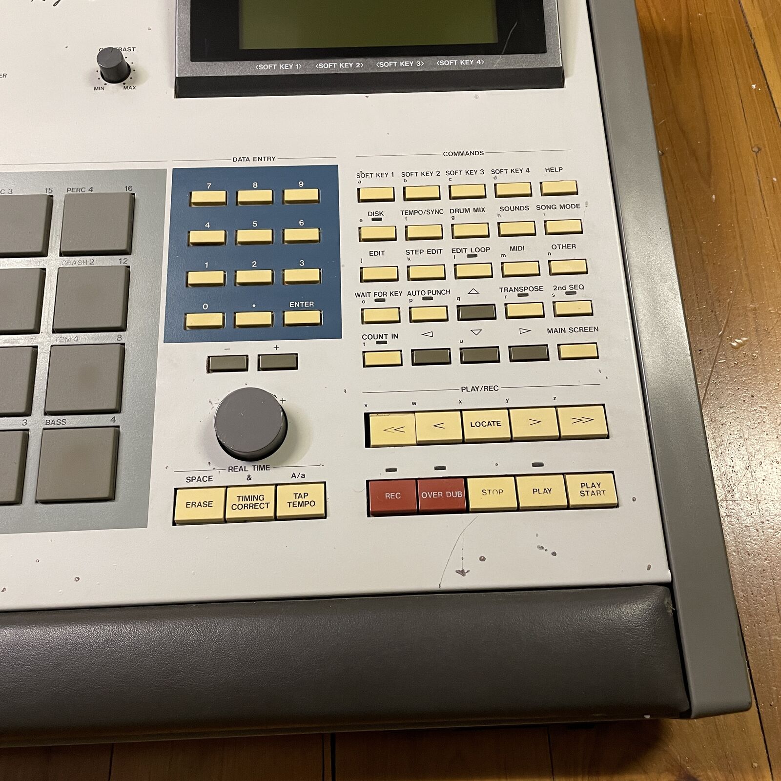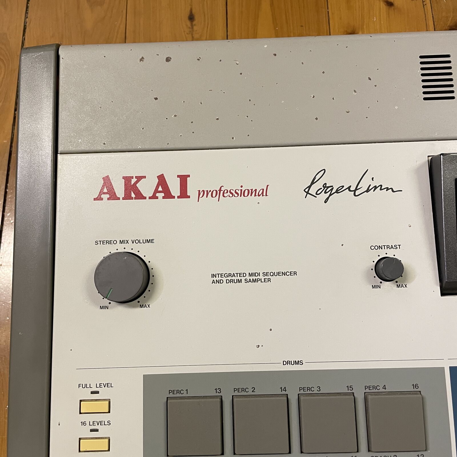 Akai MPC60 sampler. The OG legend that found its way into countless studios and was integral in hiphop and electronica for over 30 years. This is a players unit and is priced as such. The only issues of note on this are the lack of backlight on the display and the left fast rewind button has disconnected from the return spring so it's loose. The button works fine, just the plastic button cover is loose. If you're interested in purchasing this unit but want it refurbished with the backlight and button repaired, we offer those services for the standard charge.