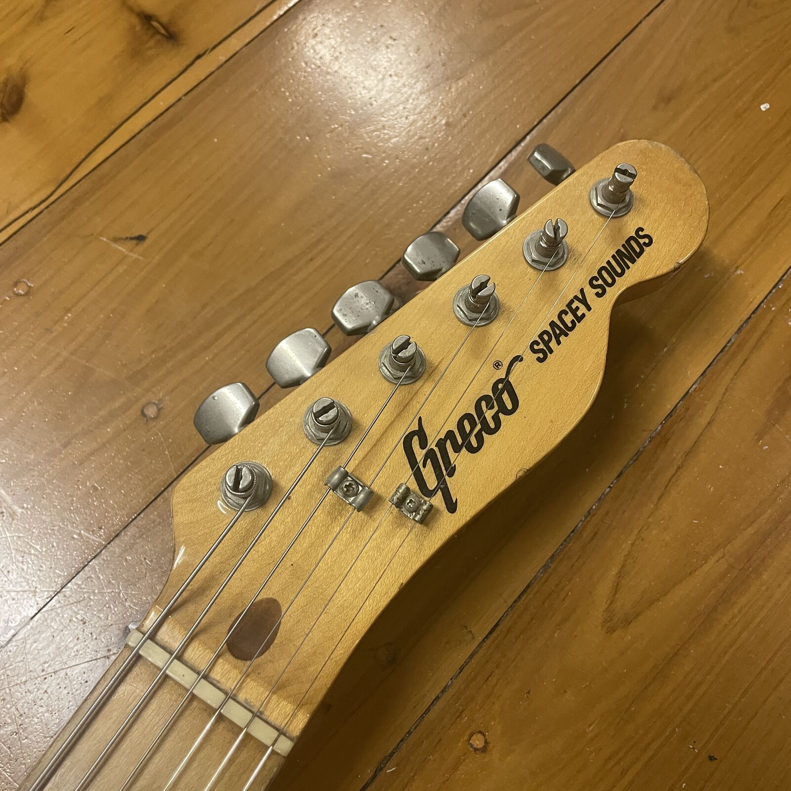 Greco TE500 Thinline Telecaster 1975. Made in 75 by Fujigen, these are better made than the guitars they were replicating. Lightweight sen ash body, maple neck, Maxon Widerange style humbuckers and classic hardtail bridge. This guitar is in excellent playing condition and freshly setup. The body has scratches and dents consistent with a 50 year old guitar that's been played.